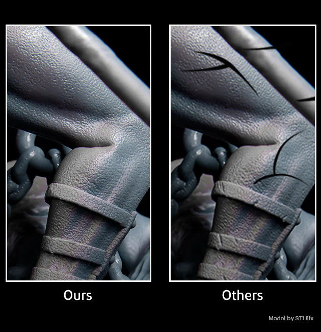 ELEGOO standard photopolymer resin has a strong anti-background light ability so that no excess resin is left on the surface of printed models, ensuring that each model is printed with a smooth surface finish, clear texture, and fine details. -